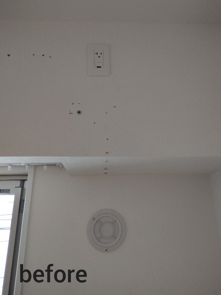 今回の写真はエアコン取付穴のクロス補修の写真です
